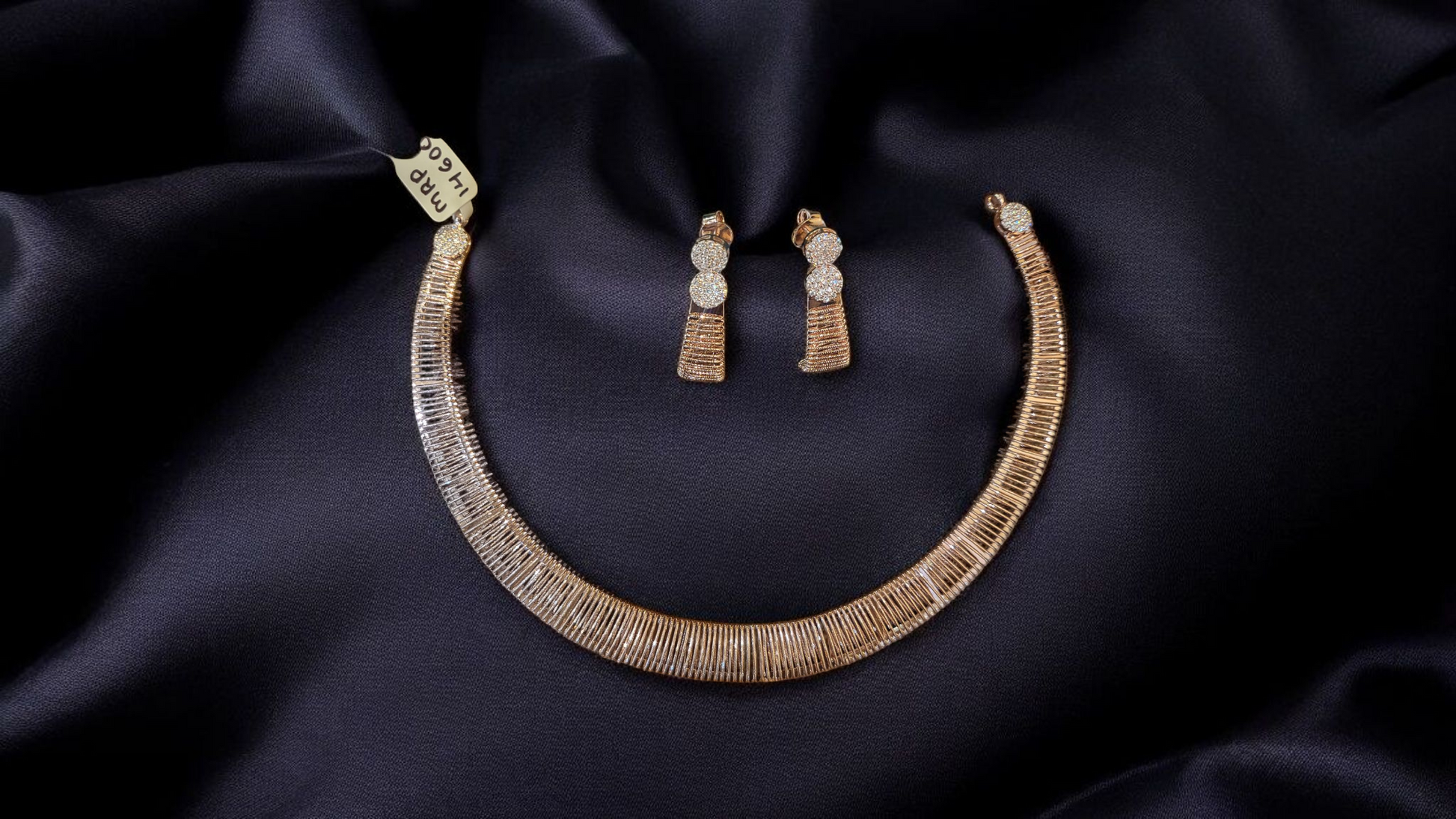 Sterling Silver Collar Choker & Earing Set Rose Gold Plated